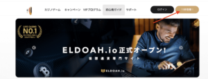 エルドアカジノに新規登録するには、当サイト経由でエルドアカジノ公式サイトにアクセスして、右上にある”15秒登録!”をクリックしてください。